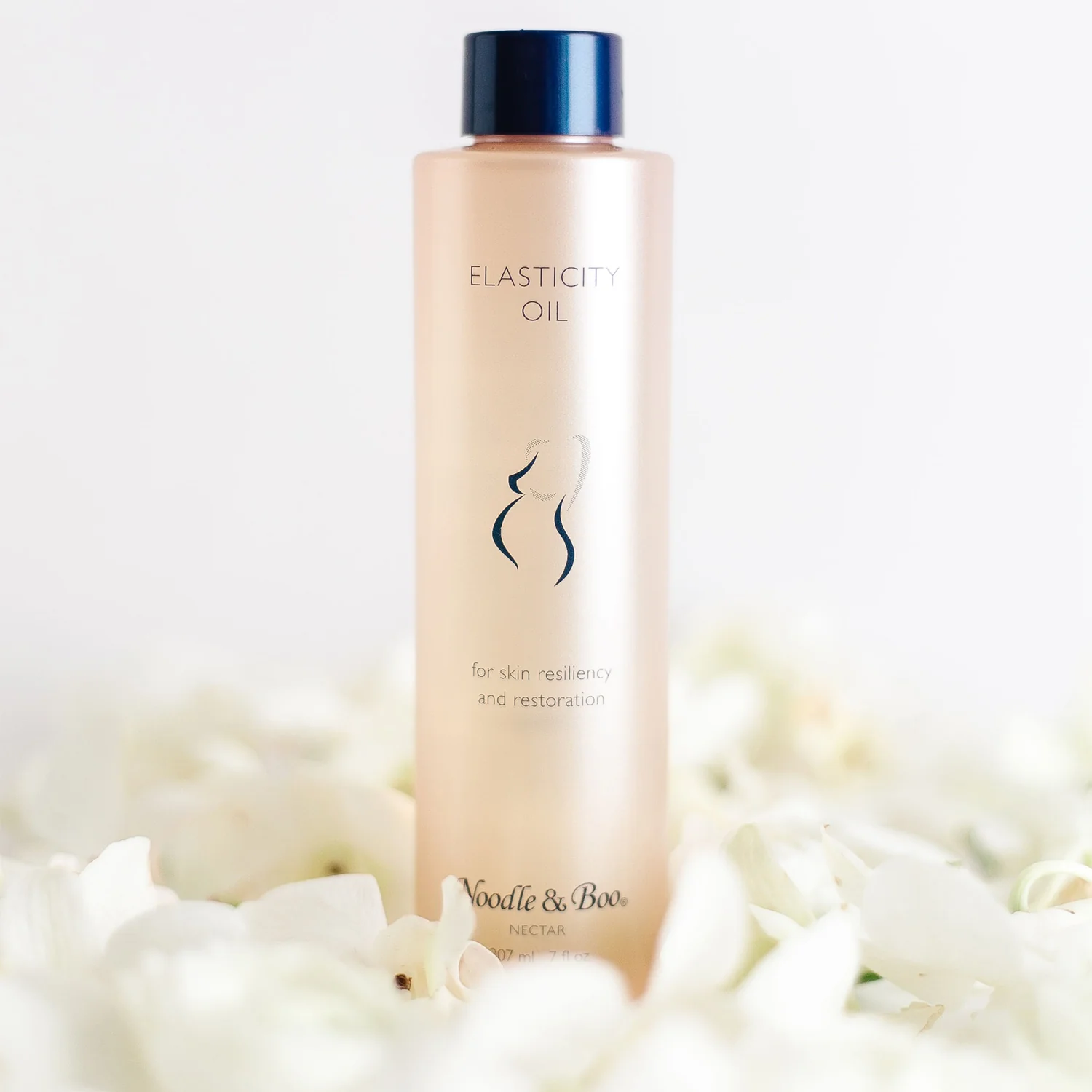 Elasticity Oil delivers an organic blend of sunflower and jojoba seed oils to moisturize dry, itchy skin while enhancing skin’s natural elasticity
